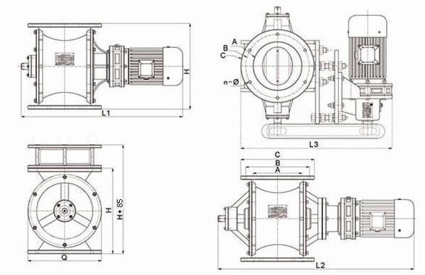 | 型號(hào) | A | B | C | H | Q | L1 (內(nèi)) | L2 (外) | L3 (鏈) | n-Ф | 工作溫度 ℃ | 轉(zhuǎn)速 轉(zhuǎn)/分 | 電機(jī)功率KW |